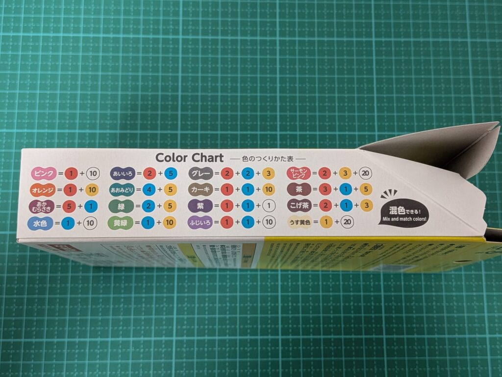 箱の側面に、色を作るときの参考図が載っているので、それをもとに作ると楽だよ!