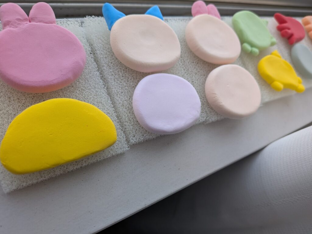 写真には写っていないのですが、粘土を均等に平らにすることができるプレス板もおすすめです!(これにかなり助けられた)