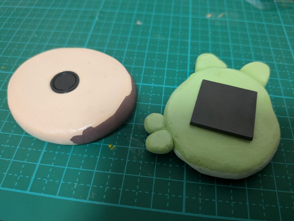 マグネットは、成形の際に粘土に埋め込む方法もありますが、個人的には最後に接着するのを推奨します。