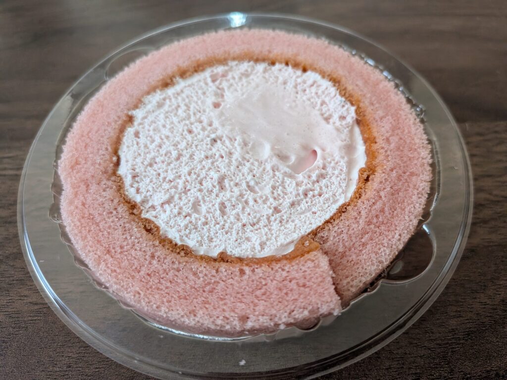 ローソンのプレミアムロールケーキと同様、スポンジはふんわり、でもなぜかしっとり感もちゃんとあって不思議です。ローソンさんの企業努力の賜物なんだなとしみじみ。