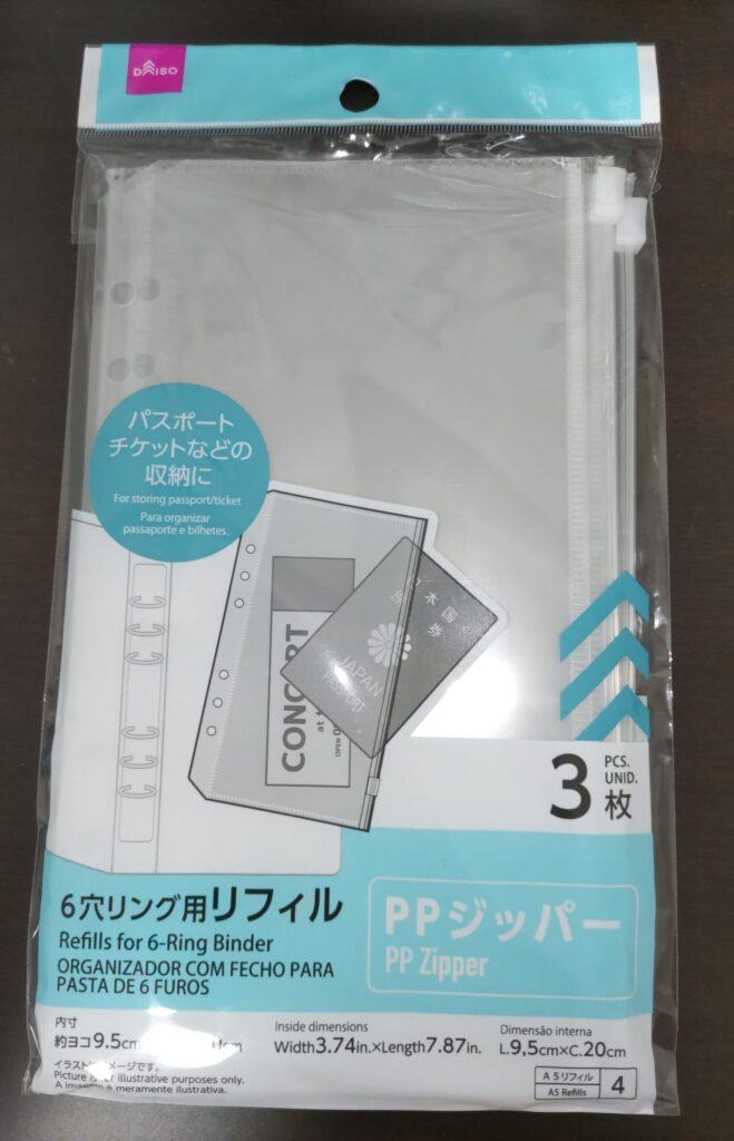 6穴リング用リフィル PPジッパー 3枚(ダイソー)